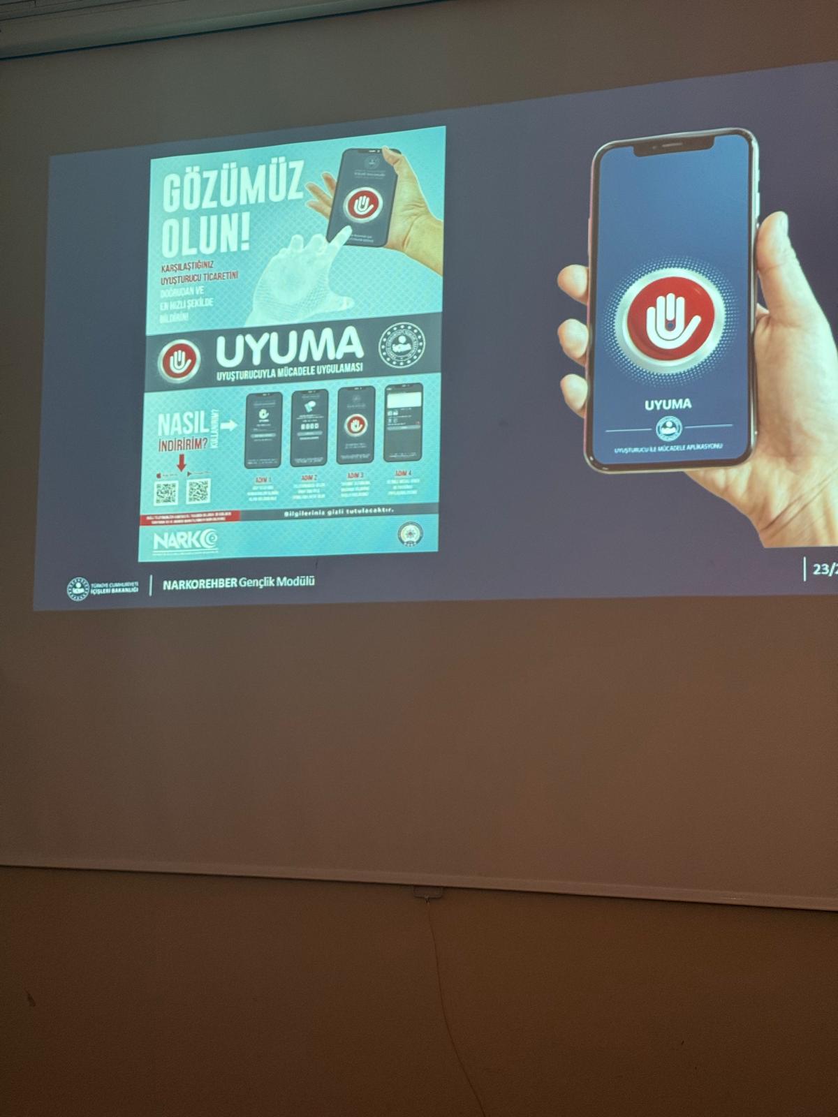 Seminerde ayrıca, uyuşturucu ve uyarıcı madde ticaretiyle mücadele kapsamında kullanılan "UYUMA" uygulaması öğrencilere tanıtıldı. Vatandaşların anonim olarak ihbarda bulunabildiği uygulamanın nasıl kullanılacağı ve önemi hakkında bilgiler paylaşıldı.