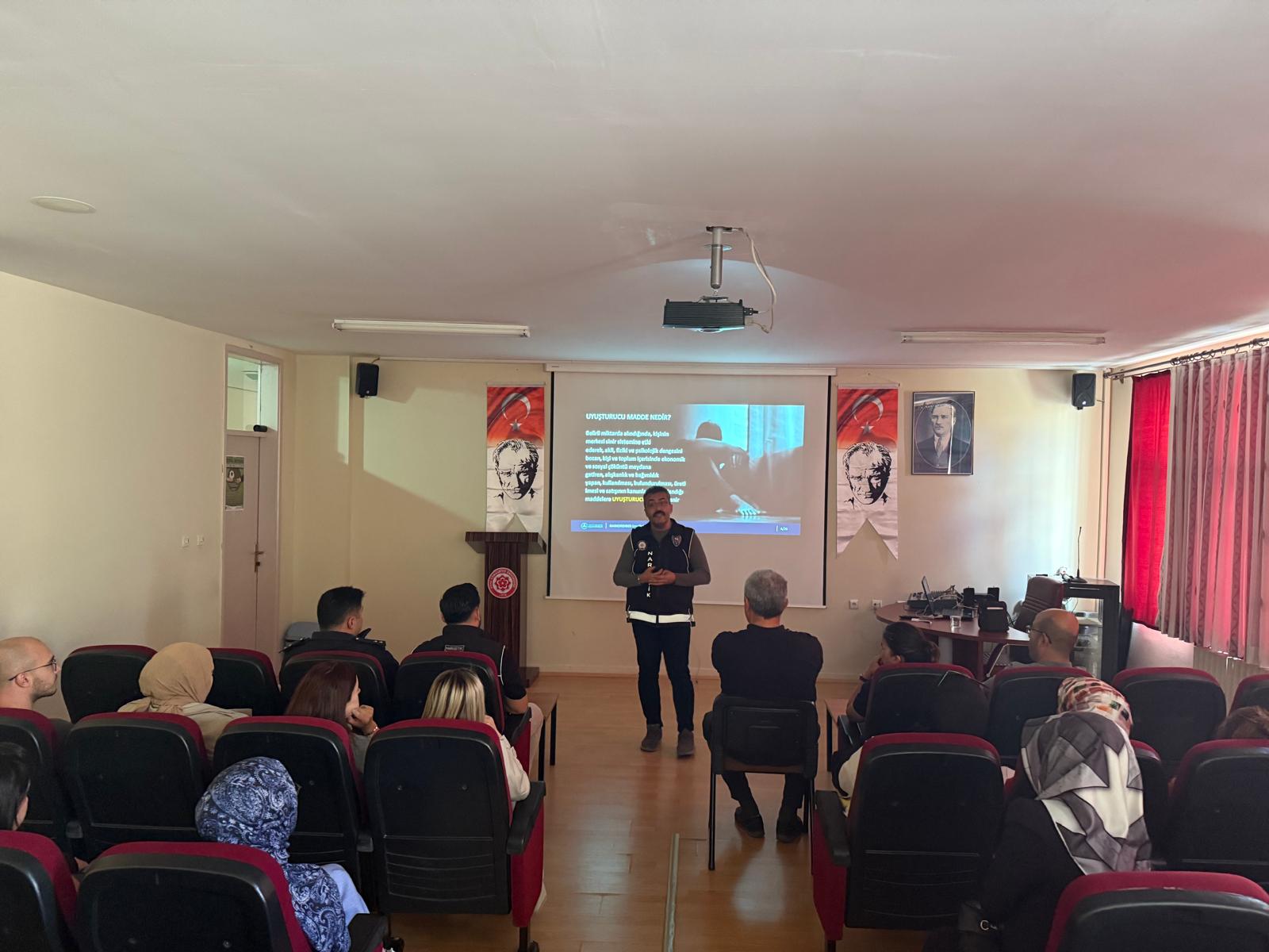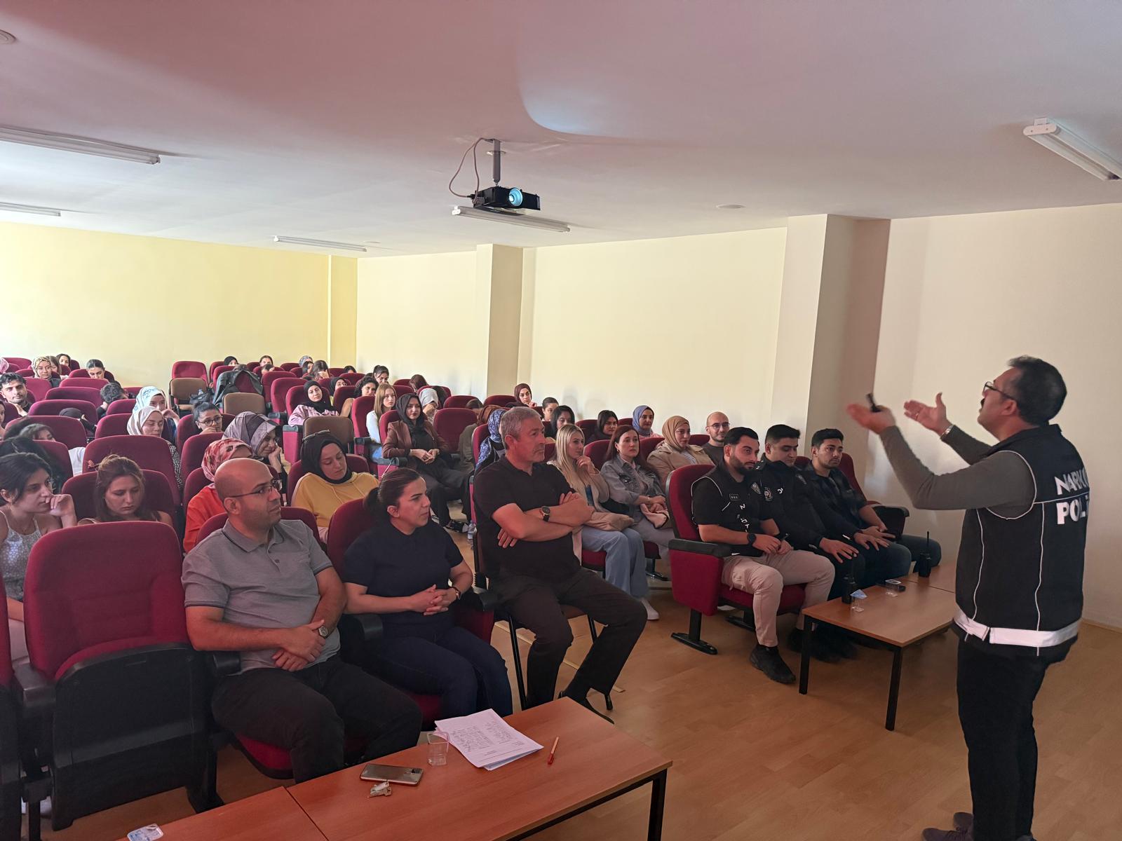 Sivas İl Emniyet Müdürlüğü'ne bağlı Narkotik Suçlarla Mücadele ekipleri, öğrencileri uyuşturucu madde bağımlılığının tehlikelerine karşı bilinçlendirmek amacıyla bir seminer düzenledi. Seminerde, uyuşturucu maddelerinin bireysel, ailevi ve toplumsal zararları tüm yönleriyle ele alındı.