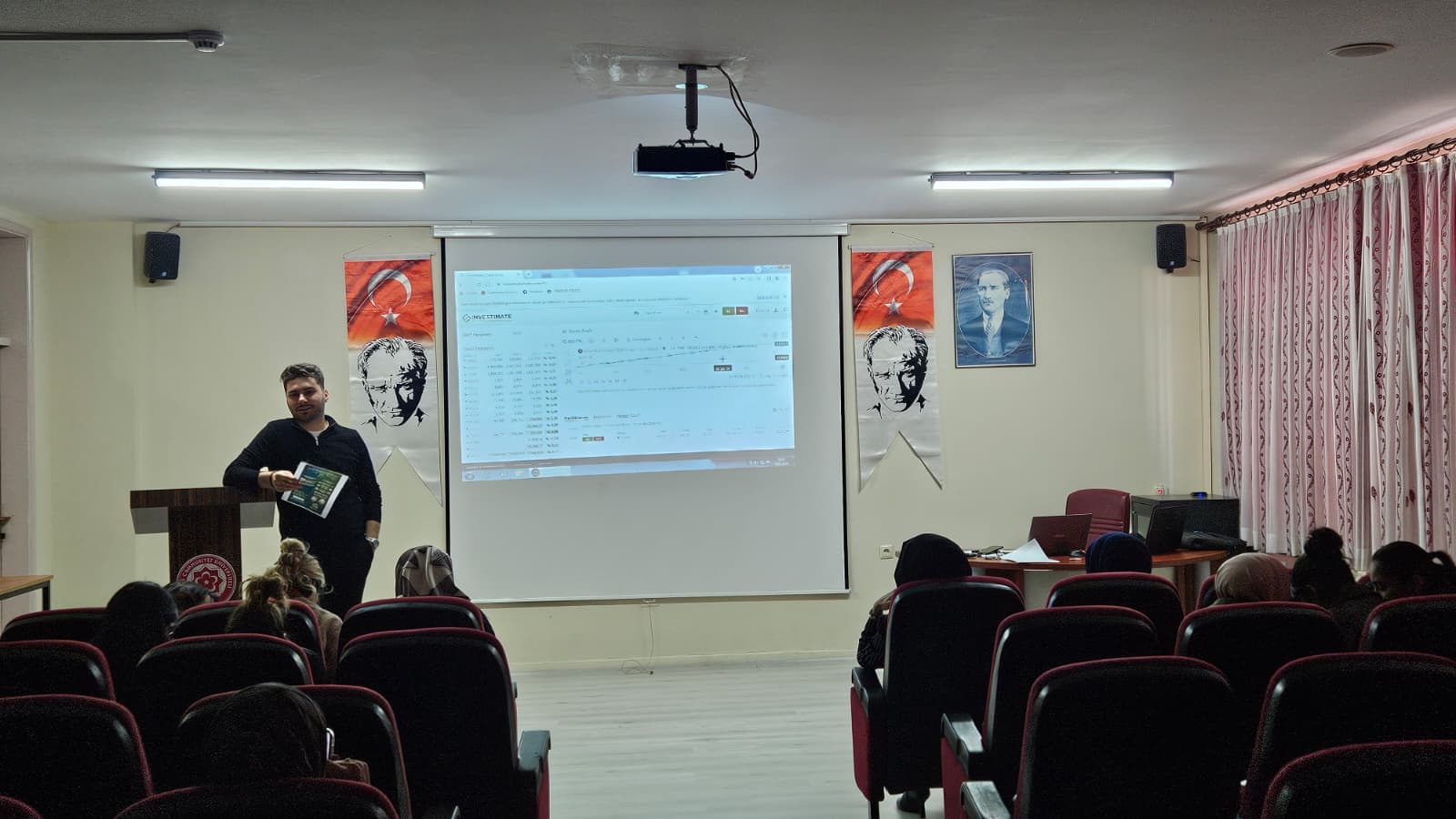 Bu kapsamda, Finans, Bankacılık ve Sigortacılık Programı Öğretim Görevlisi Muhammed Said ALICI tarafından “Investimate 2026 Sanal Borsa Yarışması Bilgilendirme ve Eğitim Toplantısı” başlıklı bir konferans gerçekleştirilmiştir. Konferansta yarışmanın işleyişi, platformun kullanım arayüzü, sanal portföy yönetimi ve yatırım kararlarının nasıl alınması gerektiği konularında detaylı bilgiler verilmiştir. Ayrıca öğrencilere finansal piyasaların temel dinamikleri, risk yönetimi, yatırım stratejileri ve finansal okuryazarlığın bireysel kararlar üzerindeki önemi hakkında kapsamlı açıklamalar yapılmıştır.