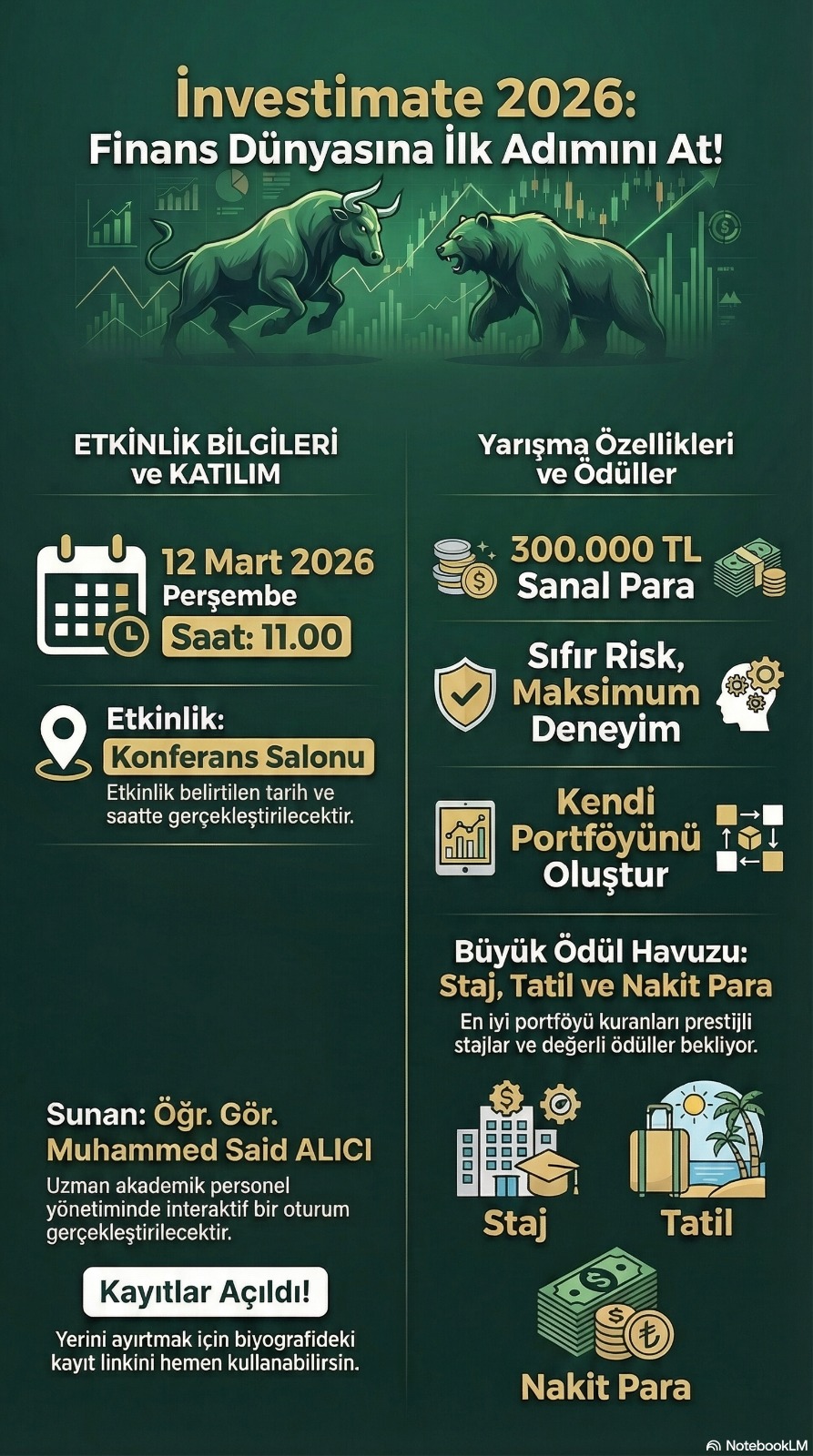Türkiye’nin en kapsamlı sanal yatırım yarışmalarından biri olan Investimate 2026, öğrencilerin finansal okuryazarlık düzeylerini artırmak ve yatırım bilincini geliştirmek amacıyla başlatıldı. Boğaziçi Üniversitesi, Yatırım Finansman ve Forinvest iş birliğiyle düzenlenen yarışmaya okulumuz öğrencileri de yoğun ilgi gösterdi.